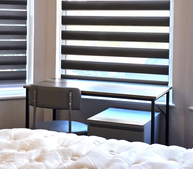 A cosy, well-connected, 2 bright and comfortable large rooms in a large house with all modern appliances available in this well-sought area of Watford. The rooms have some storage space, a small table, a chair, and a wardrobe.
