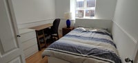 Your bedroom (2.7 x 3.5 m) is front-facing, and is fully furnished, with a bed (new), bedside cabinet, lamp, desk, chair, set of draws, built in wardrobe/cupboard and a bin. Bedding isn't provided, except for a mattress protector.