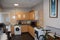 In the kitchen there is a washing machine, tumble dryer, microwave and additional seating.