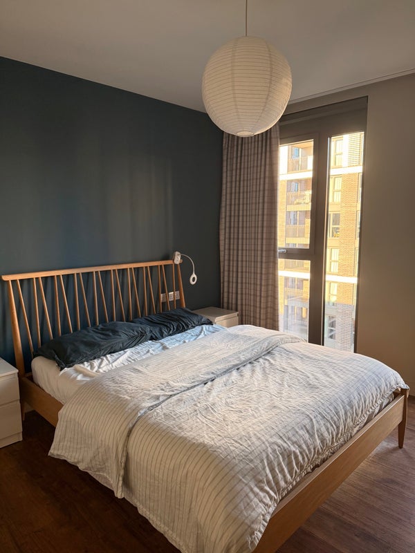 A bright and spacious master bedroom with private bathroom (bathtub included) available in a modern 2 bed 2 bath apartment at Canada Gardens, Wembley (HA9 0JS).