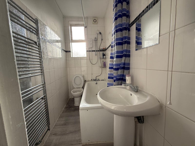 Spacious three-bedroom ground floor flat with a private driveway and generous rear garden, offering excellent space for families or professional sharers.