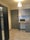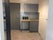 A small kitchenette with fridge,