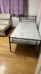 Very clean and big room for 2 boys includes two separate beds , chest of drawers, cupboard and mirror with access to garden and kitchen.