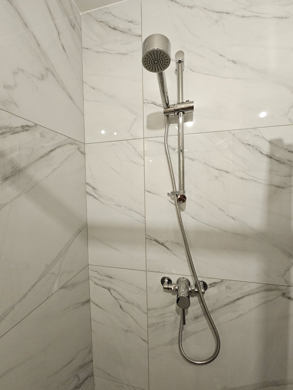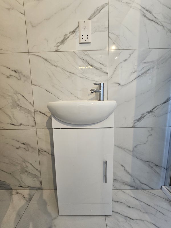 The flat contains double bed, large double wardrobe, kitchen with hob, oven, folding table, and separate shower-room.