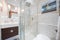A fully tiled, modern bathroom with WC delivers a spa-like experience in your own home.