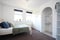 - Chest of drawers, bedside table, double bed, large built in wardrobe