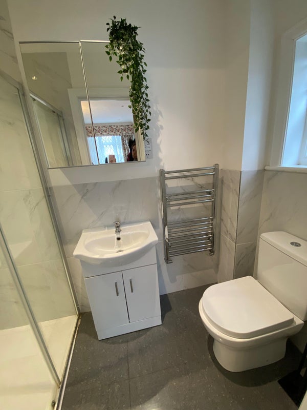 The room benefits from a 3-piece ensuite bathroom (shower, toilet, basin, and central heating towel radiator). The shower is a luxury high unit with constant hot water supply due to a large hot water tank & pump in the house.