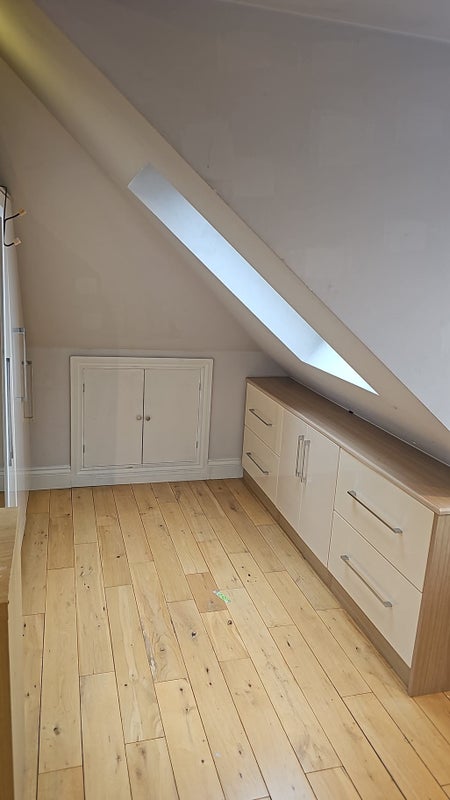 We are offering a bright, well-maintained loft room in a quiet home, featuring a lovely garden view and the privacy of its own modern en-suite bathroom.