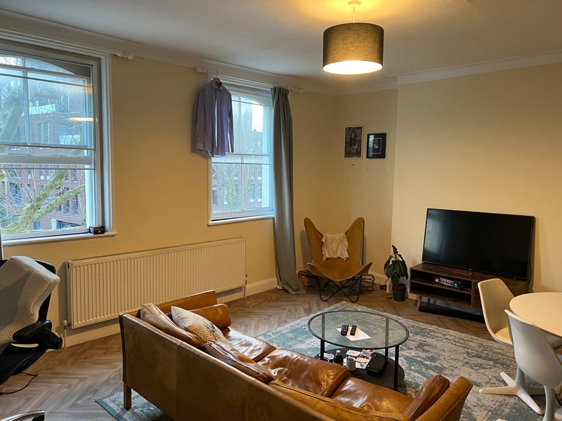 The flat is split over two floors with a huge shared living room, main bathroom upstairs and an extra toilet downstairs. Fully furnished and ready to move in.