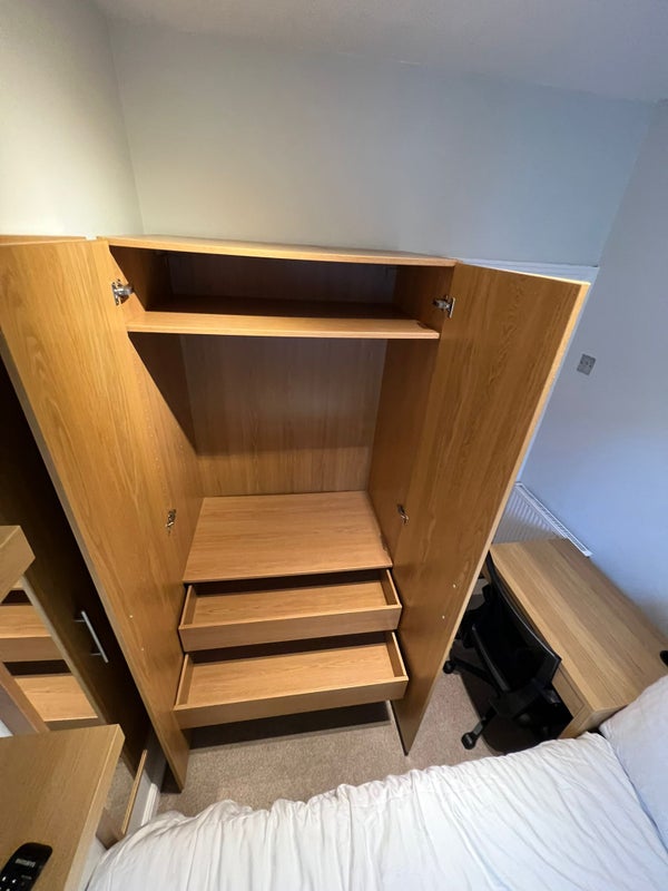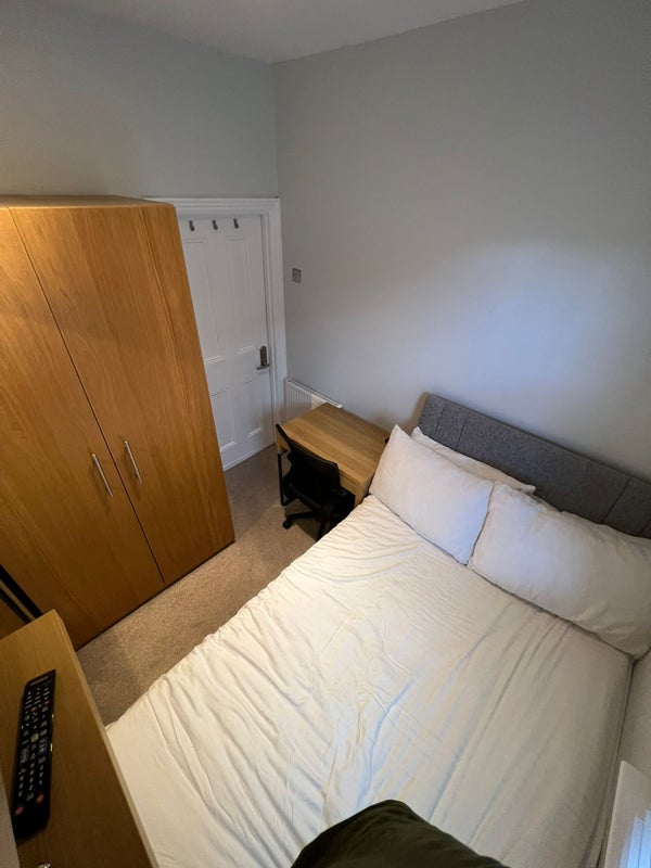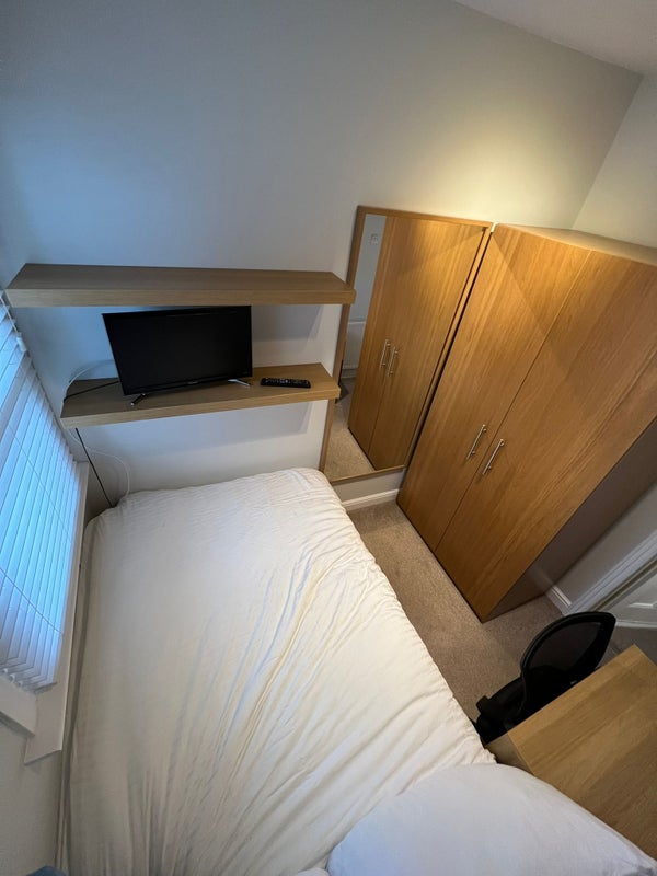 - Fully furnished room with standard double bed with underbid storage (linen not included), chest of drawers, bedside tables, desk and chair, wardrobe, full length mirror and Smart TV.