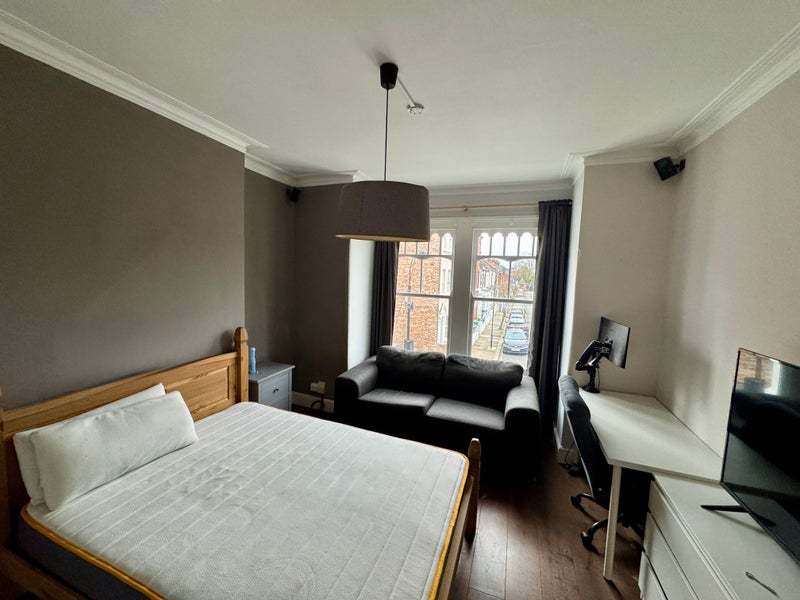 The room has high ceilings and loads of natural light, so it always feels bright and spacious. It’s currently rented unfurnished from the landlord, but as our current housemate is moving in with his partner, there may be the option to buy/take some of his existing furniture if you’d like.