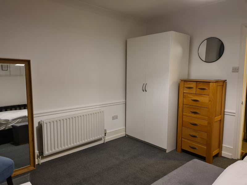 The room, freshly painted with a new carpet, is the master bedroom on the top floor [no lift] of a terraced house with loads of room for storage. It’s large enough to be used almost as a studio – and I do have a spare TV if you wanted to put one in the room!