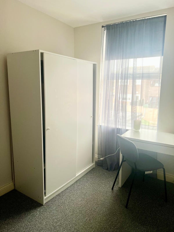 Fully furnished: double bed, wardrobe, chest of drawers, desk & lamp