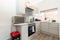 This house has a very modern, fully equipped communal kitchen presented to a high standard plus a great lounge and dining area with a comfortable sofa, flat screen TV and a table with chairs.