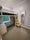 The room features a brand-new raised bed with new mattress, creating plenty of usable space underneath and giving the room an open, spacious feel.
