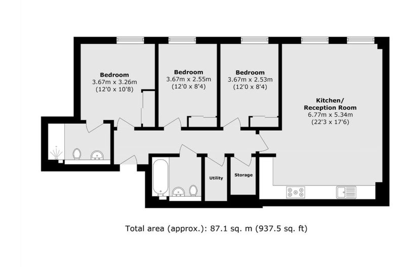 Beautiful, bright three bedroom flat offering 931sq ft of stylish accommodation in a purpose built modern block in the heart of Kensal Rise.