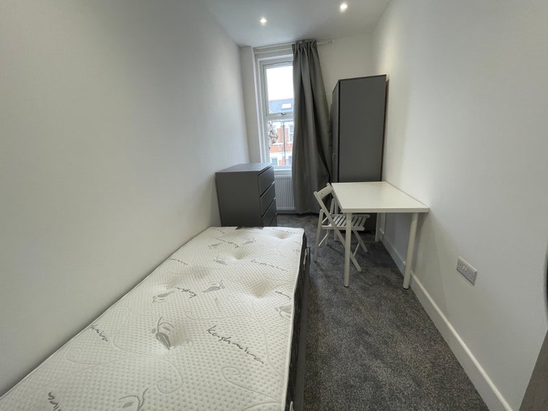 A 7 bedroom, 2- bathroom house with garden offering single rooms, suitable for professionals and students.