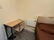Room consists of bed desk/chair and large Ikea wardrobe.
