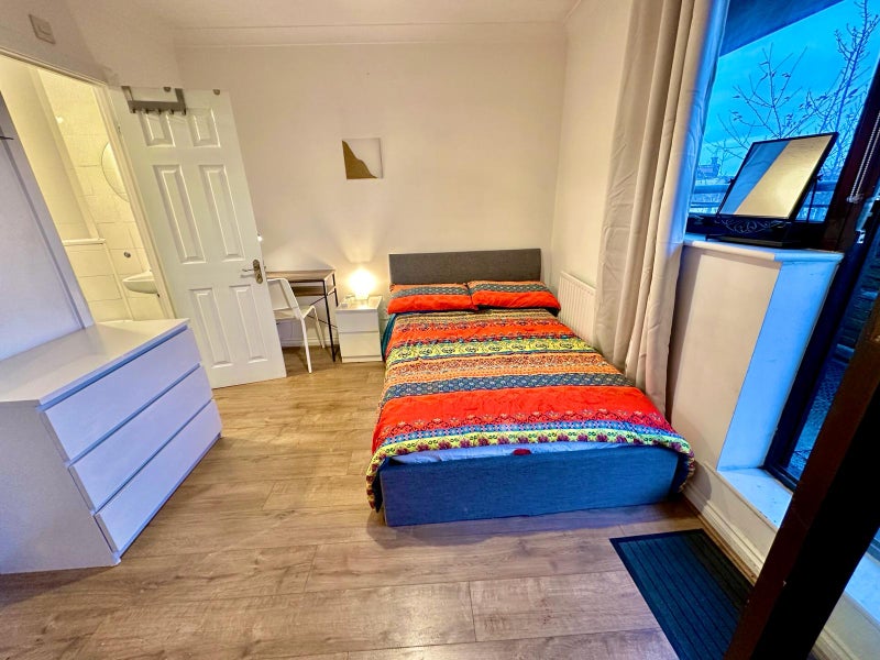Spacious Double ensuite room with huge balcony in this 5 bedroom house only 5 min walk from Neasden Underground station (Jubilee line) with easy access to London Centre area and only 1 stop away from Wembley Park.