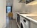Available now. This flat is offered furnished, and the kitchenette includes a fridge, hob, oven and washer.