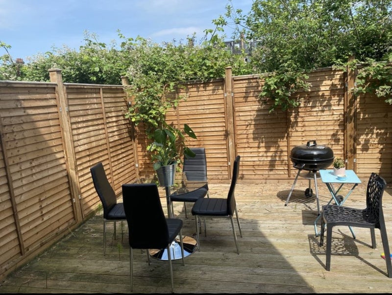 The house: The room is furnished, located in the second floor of the flat. The house is modern and fully furnished. There is a large open plan kitchen well equipped with a cozy living/tv room. There is also a decked garden for the summer and for Hendrick (a lovely 5 yo french bulldog). Outside would be also the place for smokers, not in the house!
