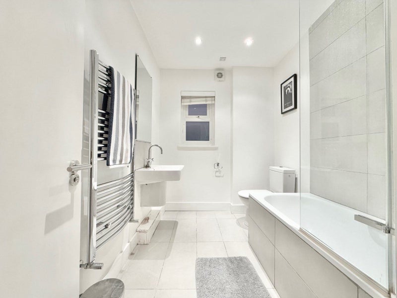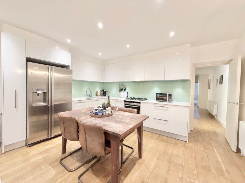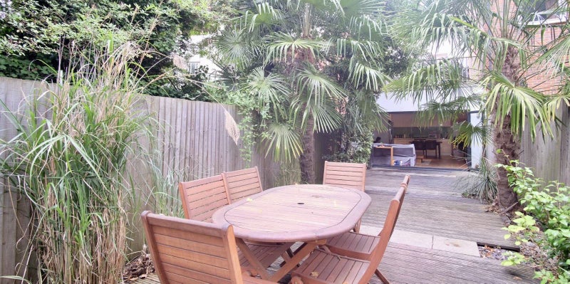 This privately-owned ground floor flat features a large living space and a secluded, lush garden with palm trees and foliage that lend a relaxing stark contrast to busy, cosmopolitan London. There are two gardens on the property. One that is private as shown in the photos and a much larger communal garden behind.