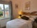 Double bed with double wardrobe and integrated drawer storage.