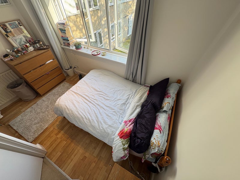 We have a lovely double room 5-8mins from Southfields tube & village. Lots of storage space floor to ceiling triple wardrobes with large windows over looking maintained gardens.