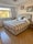 Cosy living room merged with kitchen over 750 sq ft. (70m2) with dining table and heated kitchen floor with loads of plates and cutlery to use. Nice big warm house that was refurbished by the owners to a high standard.