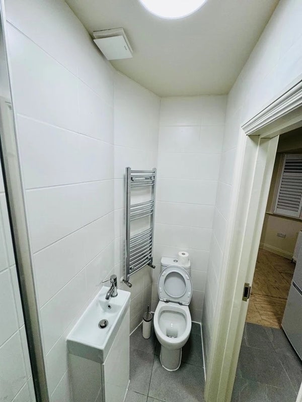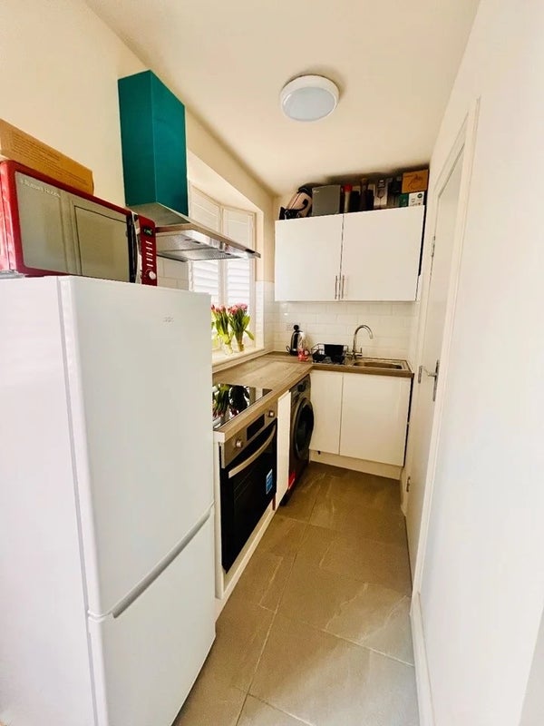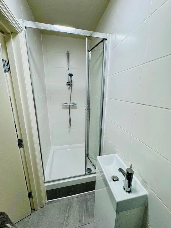 This inviting space features a well-equipped kitchen boasting a brand-new hob, oven, and fridge, along with some kitchen amenities, complemented by a kitchen sink and washing machine. The stylish white suite bathroom offers a large pressure shower, toilet, ceramic sink and a heated towel rail. You also have brand new radiators with gas central heating. The studio is well lit with lots of windows with natural day light, and it comes with the convenience of modern built in shutters for privacy.