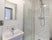 A stylish, en-suite modern shower room with a large shower and shower head, wash basin and toilet. Your shower room also comes with a heated, chrome towel rail for added convenience.
