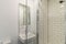 A stylish, modern shower room with a large shower and shower head, wash basin and toilet. Your shower room also comes with a heated, chrome towel rail.