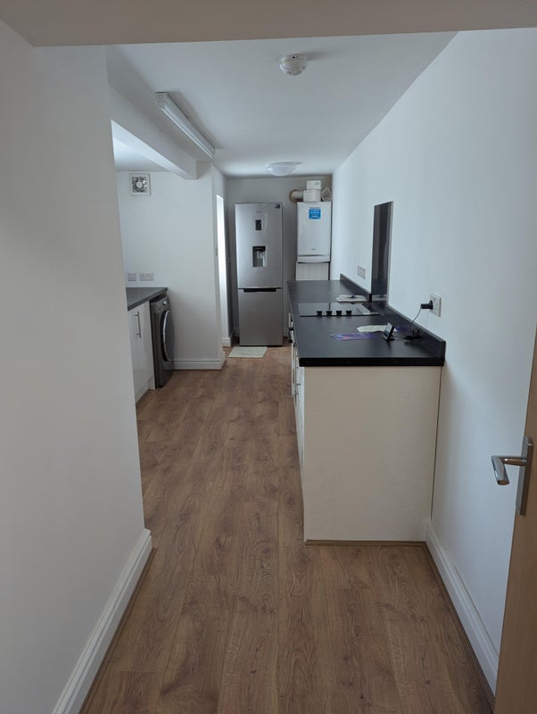 Kitchen gas seperate washer and dryer. Large fridge freezer, electric hob and microwave.