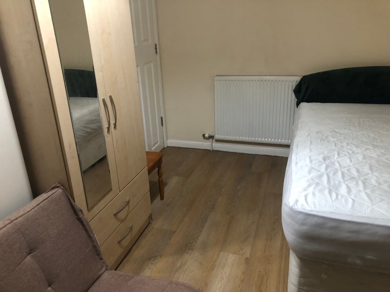 The lovely double bedroom has a desk, a wardrobe and a double bed. It is a sunny bedroom. Lovely and comfortable! Recently repainted.