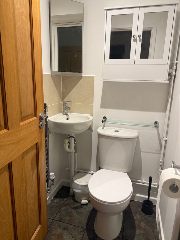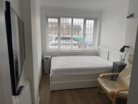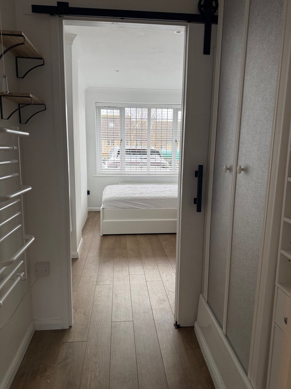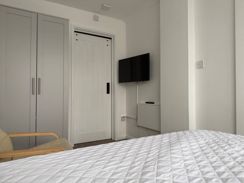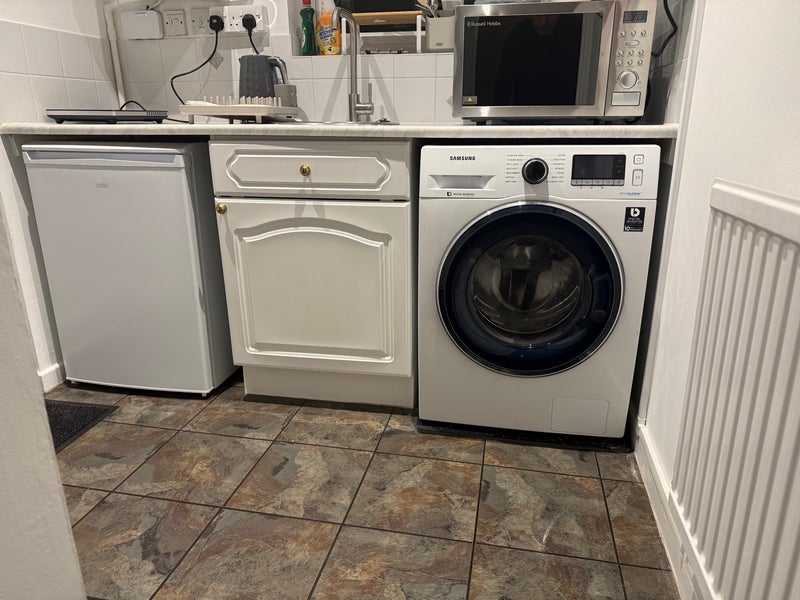 Newly renovated double room with en-suite. Equipped kitchenette with washing machine, fridge, & cooking facilities.
