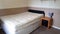 The room is furnished with Double bed with wardrobe and bedside cabinet