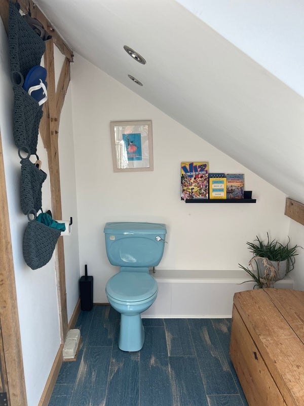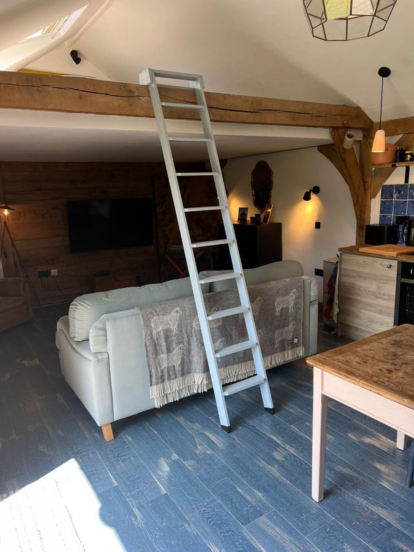 Located in Pirbright, the studio is self contained with full galley kitchen including dishwasher, fridge/freezer, induction hob and oven. The en suite bathroom has a rain shower and heated towel rail.