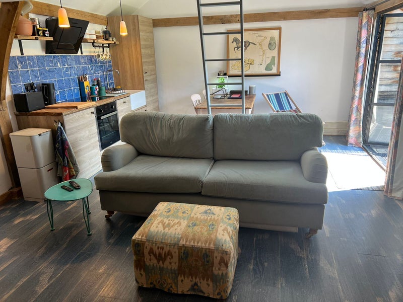 The sofa also doubles as a sofa bed if you'd prefer to sleep on that rather than on the mezzanine bed deck above the ladder.