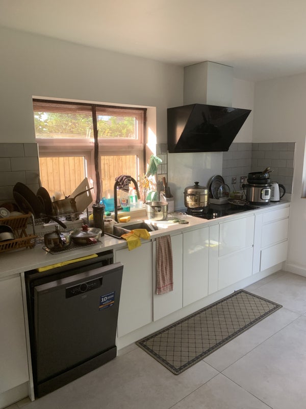 The first floor of the house is dedicated to my family (5 membered household) while the ground floor bedrooms are available for tenants to rent. The ground floor contains two double rooms, a single en-suite room, shared bathroom with shower, a living room and a kitchen. The ground floor bathroom is shared between the tenants that occupy the double rooms, while the communal kitchen is used by everyone that lives in the property. This means, the maximum number of people that share the ground floor bathroom is two.