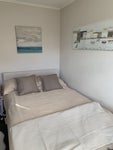 I have a newly decorated small double room . Furnished with a small double storage bed , mirrored wardrobe , chest of drawers and dressing table with mirror . Faces back garden , sunny room . Has black out curtains . Quiet small estate in Finchampstead with local shops and bus stops within 5 mins walk . I have driveway or side parking available off road . I have a shared bathroom with bath and shower . Downstairs toilet . I am looking for a quiet considerate person to share home with as I work shifts so will sometimes need to sleep in the day .