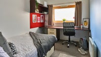 Fully furnished en-suite bedroom from 7m². Room features 3/4 double bed with underbed storage, bedside table, wardrobe, private en-suite bathroom, large desk and chair. Free wi-fi and contents insurance. All bills included in rent.