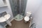 The bathroom features modern fittings, including a chrome shower with a large waterfall head.