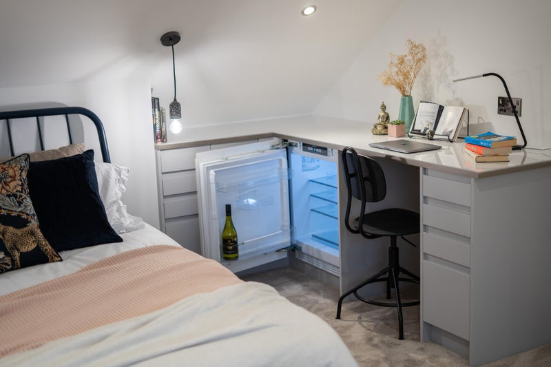 The available bedroom is located on the first floor. It's a great size with its own large ensuite, a triple wardrobe and large desk. All walls and ceilings in the house have been sound insulated so you can enjoy peace and quiet when you are in your space. The bedroom has an individually controlled radiator and heated towel rail in the bathroom. The showers have strong mains water pressure and rain shower head.