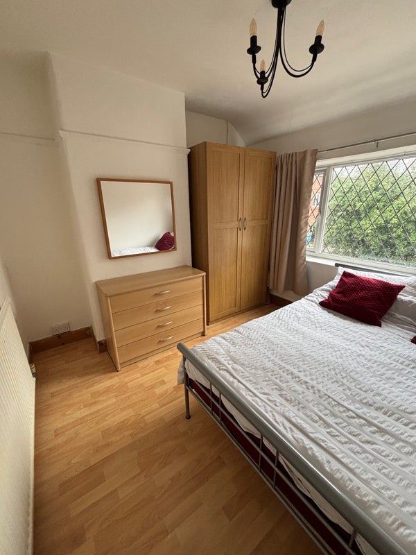 Lovely double room available in a terraced house on a quiet street in Northenden. Really nicely furnished, cosy and light living area and kitchen, and spacious garden. Within walking distance to Didsbury and right by the river with loads of lovely walks and green spaces around. Street parking available. Sharing with a clean and friendly 25 year old who works in the children’s hospital as a physiologist -