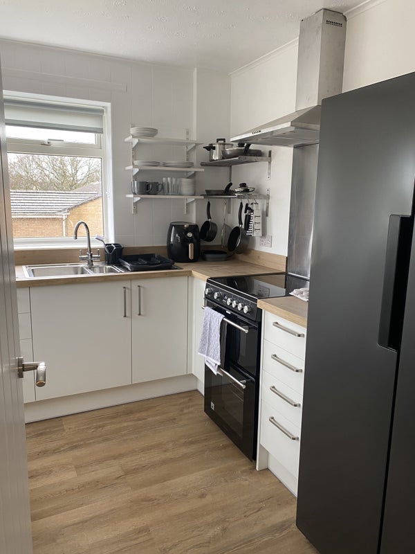 Allocated storage per room, good size fridge freezer / oven / hob / air fryer / Kettle / toaster / pots & pans.