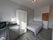 Studio is furnished with bed, mattress, wardrobe, desk and chair.