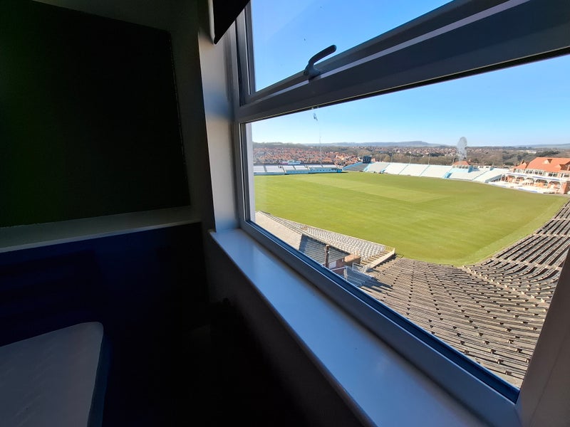 Room 6 - This is a beautiful room overlooking the cricket ground. It is equipped with a double bed with double mattress and mattress protector, chest of drawers, bedside table, two wardrobe rails, desk and chair, an en-suite bathroom with rainforest shower and Bluetooth speaker mirror and a lock on the door. It's on the second floor of the house. A video of the room is available on request.