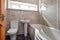 Shared upstairs modern bathroom with bath/shower.