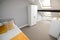 The room is very large and bright with two skylight windows, a double bed, wardrobe, chest of drawers and arm chair.