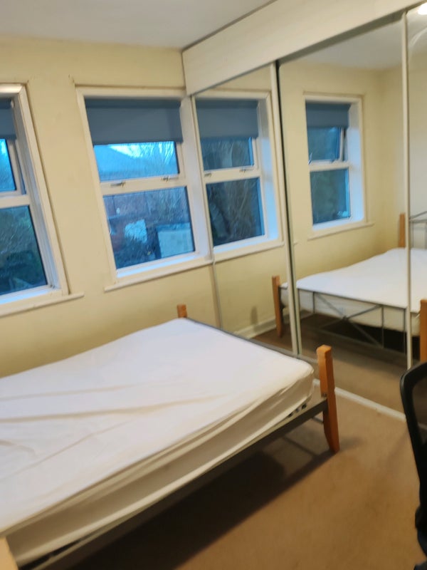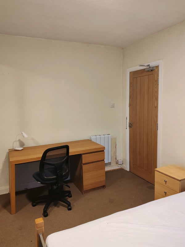 All the rooms have wardrobes, bedside tables and desks. The living room (Currently being decorated) has 2 new sofas and coffee table. Communal kitchen and bathroom. Bike shed, rear garden with patio. Free on road parking.